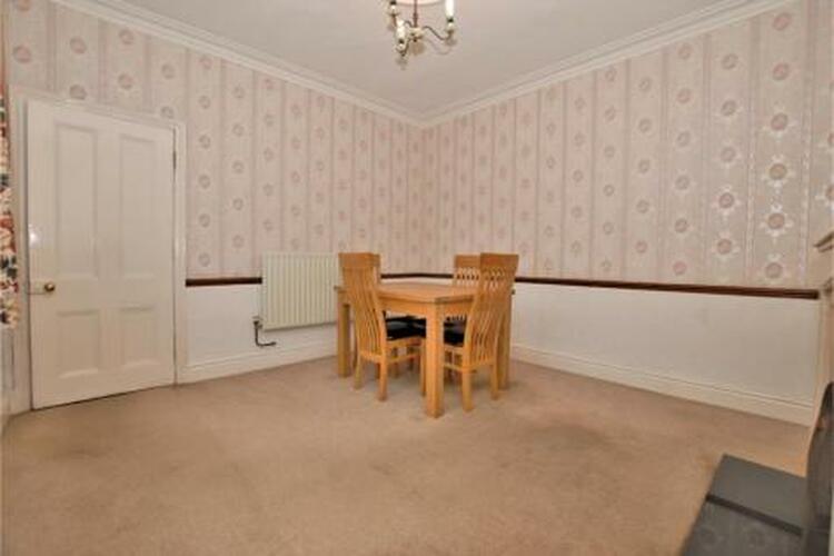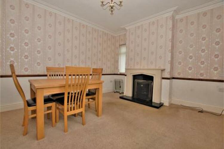 With the focal point of the room being the open fireplace with tiled hearth, featuring dual aspect views to side and rear elevations with uPVC double glazed window units, dado rail, radiator, coving to ceiling, TV aerial point.