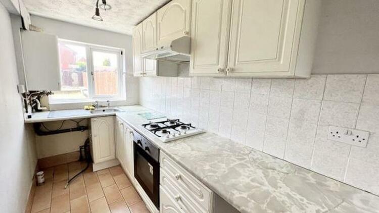 Having a range of wall and base units, sink and drainer unit, electric oven, gas hob with extractor hood over, plumbing and space for washing machine and fridge/freezer, wall mounted gas boiler and a uPVC window to the rear elevation.