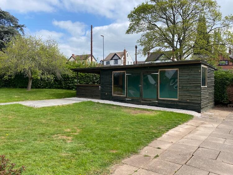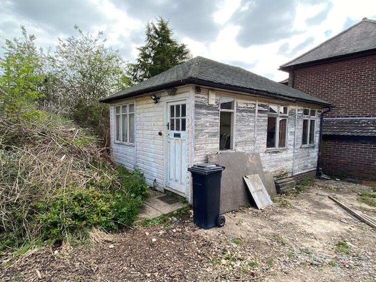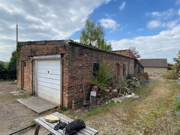 A timber framed former builders site office with a separate and substantial brick built single storey workshop with up and over door, doors and window, power and lighting. There is a driveway leading to the brick built detached garage with pitched tiled roof, double timber doors.