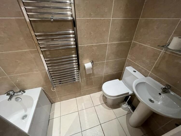 Having fully tiled walls and flooring, radiator, light point and extractor fan.<br>Low flush WC, wash hand basin and bath with shower above.