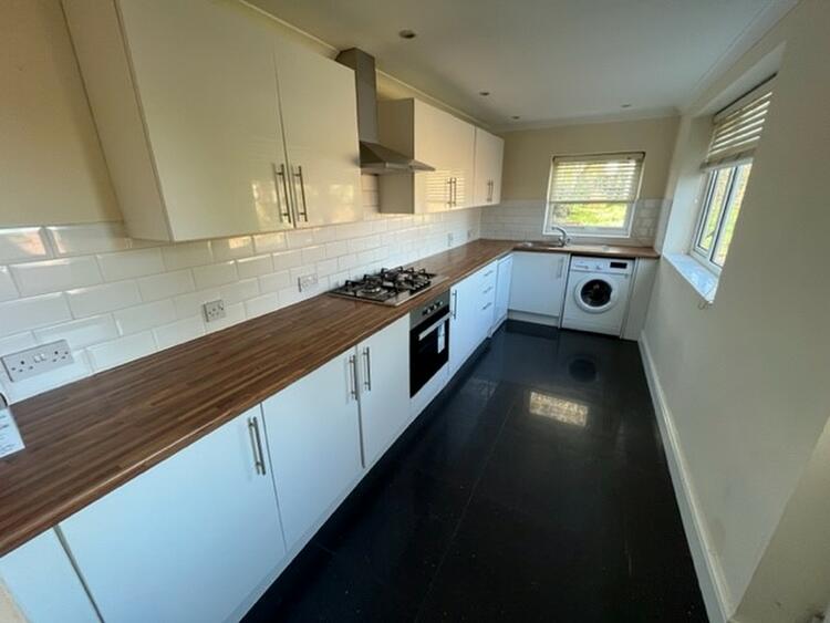 Window to the side and rear, light point, tiled flooring and radiator. Fully fitted kitchen with a full range of wall and base units having tiled splash backs. Inset sink and drainer, built in electric oven, gas hob and extractor fan. Plumbing for washing machine and dishwasher.