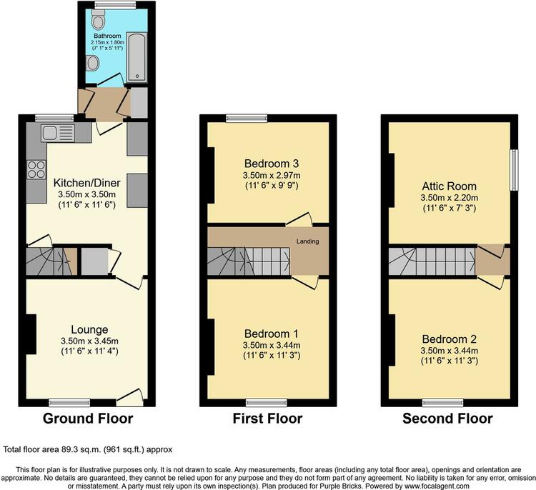 To the ground floor there is a spacious front lounge, kitchen/dining area, rear hall with access to the garden and a modern ground floor bathroom. To the first floor there are two generous double bedrooms and to the top floor there is another spacious double bedroom and attic room which offers plenty of potential.