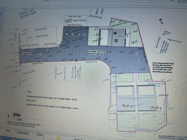 Adjacent land with planning permission granted for 3x detached dormer bungalows.