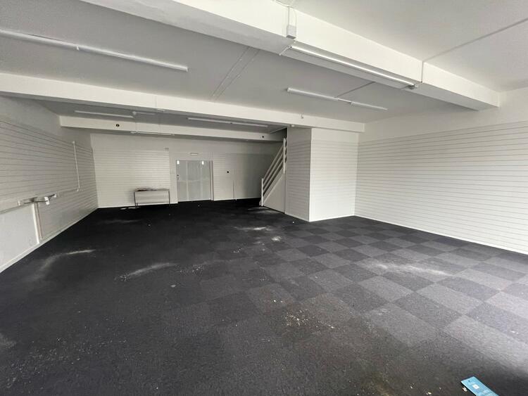 The property comprises a two-storey building with two separate commercial units to the ground floor and an open plan office above both.