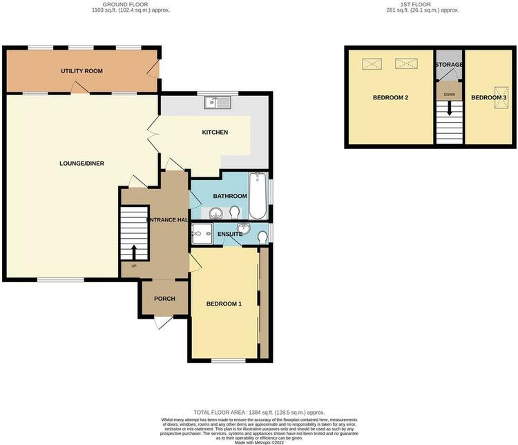 The property benefits from modern conveniences such as gas central heating and double glazing and in brief comprises of an entrance porch, entrance hall, lounge/dining room, breakfast kitchen, utility room, ground floor bedroom with built-in wardrobes and en-suite. To the first floor there are an additional two bedrooms. Outside to the front there is a low maintenance garden offering off road parking and a privately enclosed rear garden. There is a shared driveway to the side which leads to the garage which has a side pedestrian door into the rear garden.