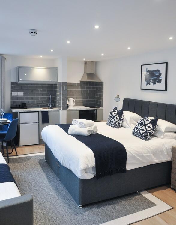 Currently generating an income of £950 pcm (£11,400 pa) 237 Sq Ft of accommodation. Includes a double bed, a kitchenette which is equipped with 2 electric hobs, microwave and fridge, and bathroom with shower.