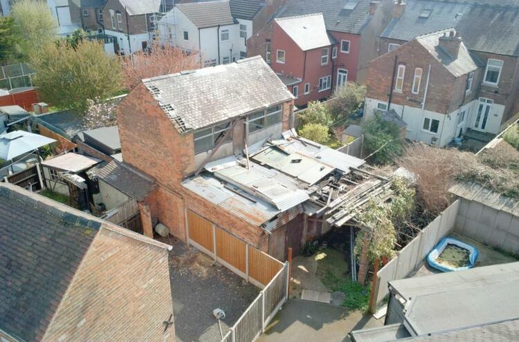 Commercial building currently used as a woodwork shop and storage for a joinery business. The premises offers a large woodworking area with separate office space and storage above. The property is accessed by a driveway and offers additional storage space at the front of the building. Requiring renovation and building works.