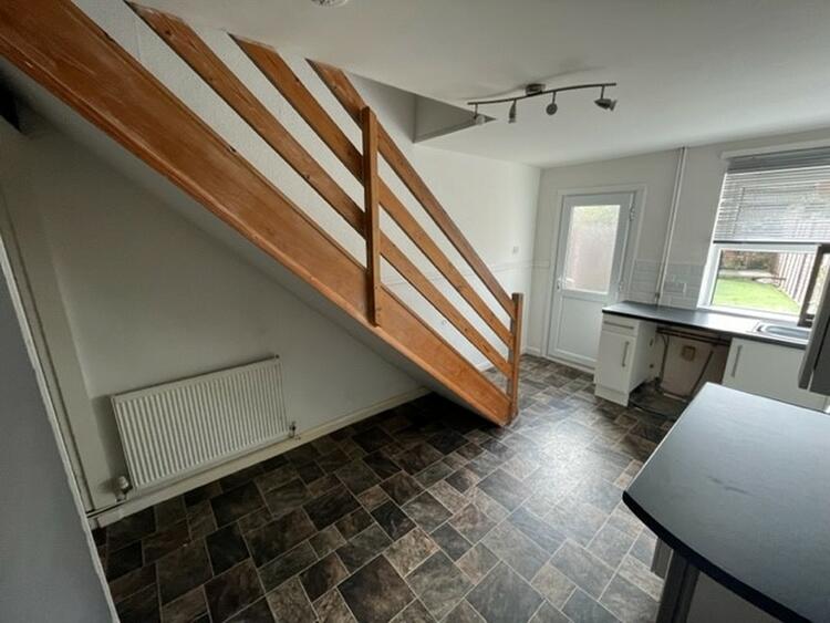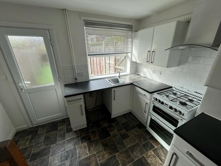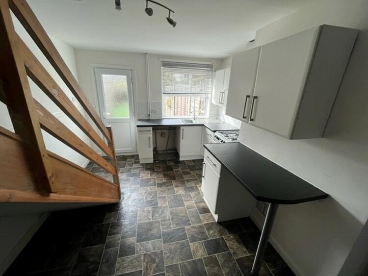 With modern base and wall units, work surfaces with inset sink, space for appliances, understair storage space and both window and door to rear aspect.