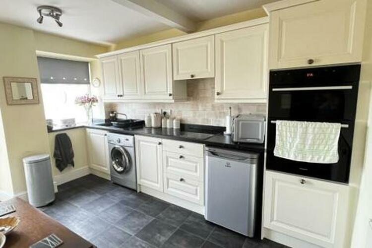 Fitted with a range of wall and base units with roll top surfaces, tile splash back and an inset 1.5 bowl sink. With a most useful separate pantry space and plumbing and space for a refrigerator and washing machine. uPVC window to the front aspect.