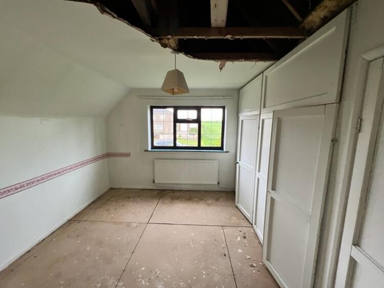 This room is currently not safe to access due to water damage and<br>comprises of built-in airing cupboard, radiator and uPVC double<br>glazed window.