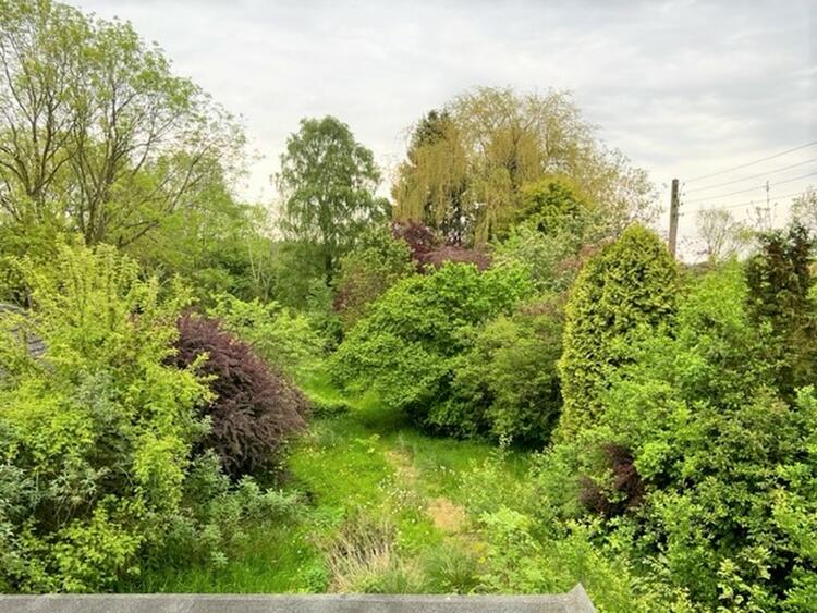 The large rear garden contains numerous mature and semi mature<br>trees, shrubs and lawn.