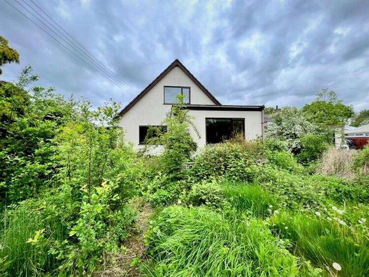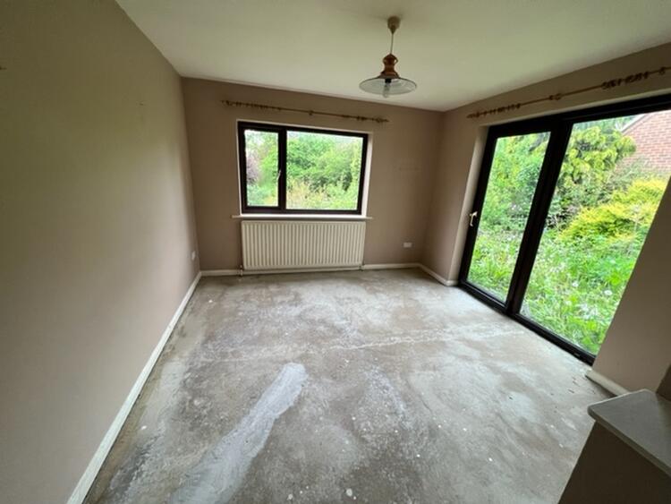 A spacious detached residence which requires modernisation and restoration and has been subject to extensive water damage from leaking plumbing. The property offers flexible rooms and stands in a large plot with open countryside beyond the rear garden.
