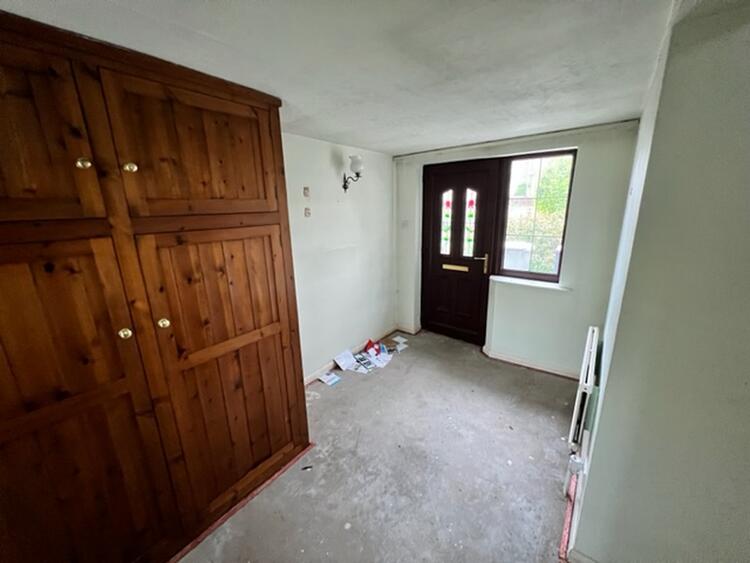 With fitted cloaks cupboard, uPVC double glazed front door and<br>side window, radiators and staircase to first floor.