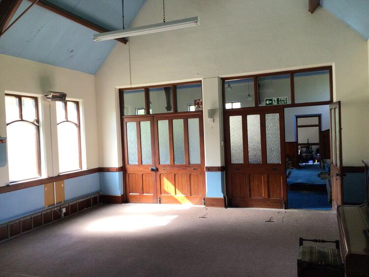 Located off the second reception room is the side entrance hall. The entrance hall has a single glazed door opening into the second reception room and wooden double doors which open onto the front of the chapel.