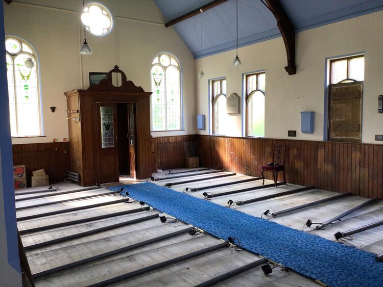 Formally the main chapel area and still retaining a seating area towards the rear. The room has a vaulted ceiling and glazed windows which provide natural light into the area. A door opens into the side reception area and further double doors open into a second large reception room.