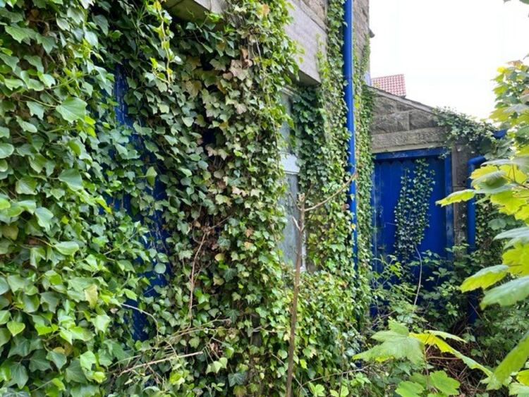 The cloakroom has a low flush WC, wash hand basin and two single glazed opaque windows