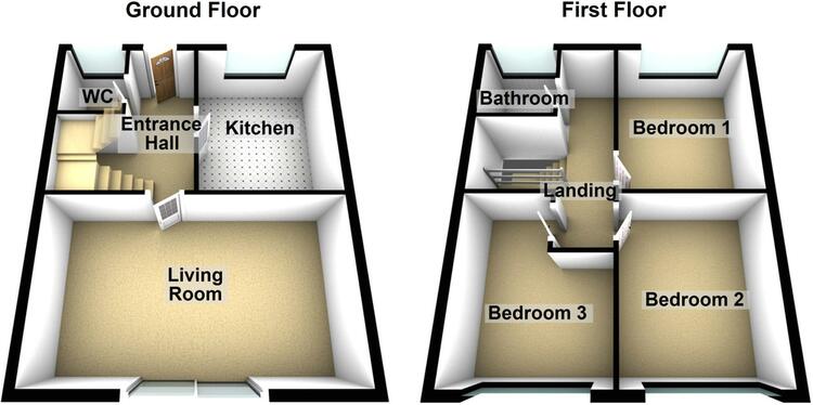 To the ground floor, there is an entrance hall, a W/C, a kitchen and a spacious living room and to the first floor, are three good sized bedrooms serviced by a three piece bathroom suite. Outside to the front, is an enclosed garden providing gated access into the property and on street parking and to the rear is a landscaped garden.