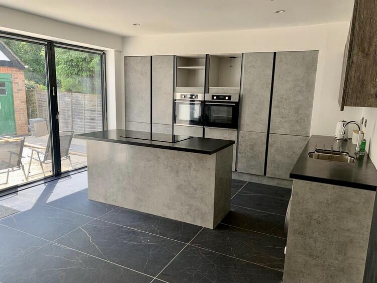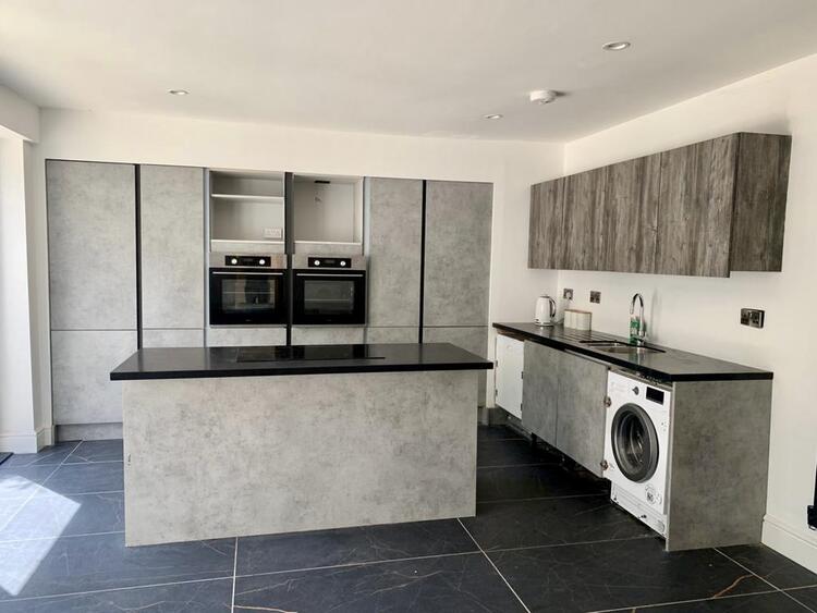 With a range of wall and base units, worksurfaces, island with breakfast bar and induction hob, integrated one and a half bowl sink with drainer, washing machine, dishwasher, electric oven, tiled flooring, spotlights, vertical radiator, UPVC double glazed bi-folding doors to the rear and door to the lounge.