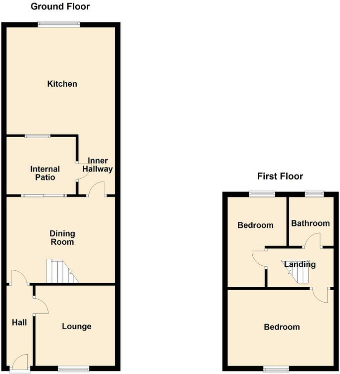 The house has a sitting room to the front, a refitted kitchen and dining area, access to an internal courtyard, bathroom with shower to go with its two bedrooms.