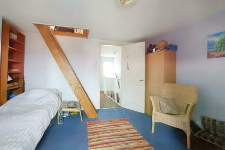 Wooden stairs to the loft, room, storage in the eaves with a UPVC double glazed Velux window.