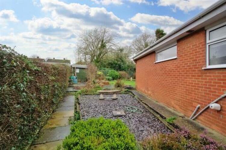The property is tucked away at the top of the cul-de-sac and has access all the way around the bungalow. There is off road parking to the front and a large garden area to the side. Immediate to the rear there is a patio area with gravelled borders which leads to a circular patio area, lawn with borders all the way around the garden with raised beds having mature shrubs. The garden is privately enclosed with fenced boundaries and there is a garden shed. The garden is South-West facing.