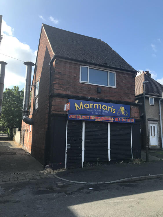 Hot food takeaway shop with living accommodation above located in an established residential location.