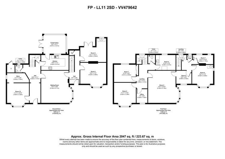 Canopy Porch with original wooden panelled entrance door and glazed inserts, Reception Hallway with tiled floor, large Waiting Room with decorative fireplace and feature bay window, Room Ten with doorway to useful Store Room, fitted Kitchen, Conservatory, Cloakroom/WC, First Floor Landing, Room Six, Room Seven, Room Eight, Room Nine, Office and Separate WC.