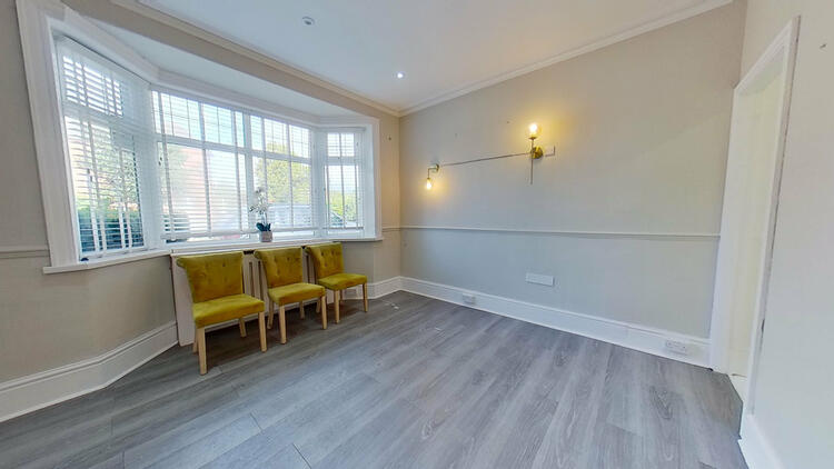 To the front, there is a large tarmac car park with allocated parking spaces for ten cars and there is a timber framed garage located at the side. To the rear the garden is divided into two with lawn, flagged patios, mature shrubs and trees. 46 and 46a are connected internally both on the ground floor and first floor. The property has recently been used as an aesthetics clinic, but could also be converted into a four bedroom house with an adjoining two bedroom house, subject to any planning permission or building regulation approval that may be required.