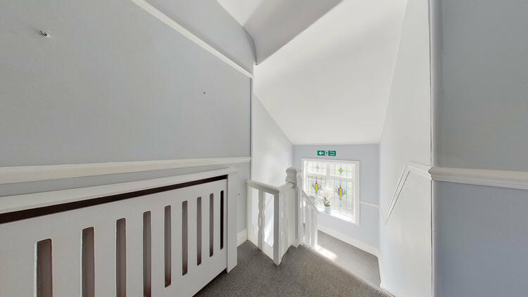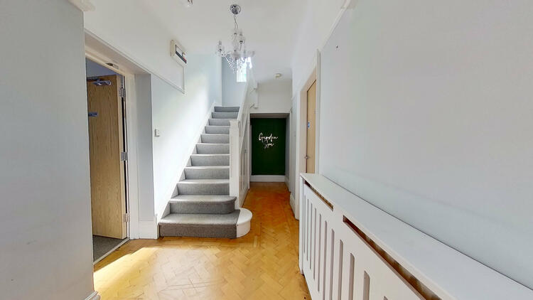 Canopy Porch, Reception Hallway with wood block parquet flooring, Room Five with beautiful brick fireplace and bay window overlooking the front, Room Six, First Floor Landing, Room Seven, Room Eight and Separate WC.