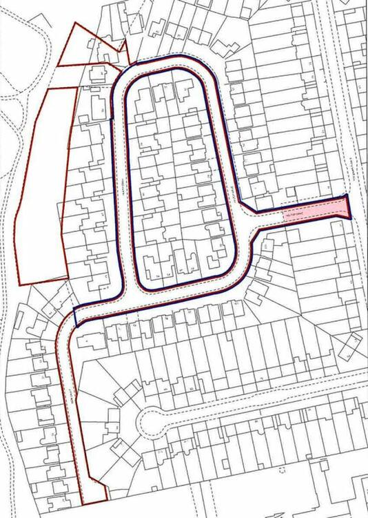 The roadways of Hilltop Drive (marked red on the plan) are also included within the sale.