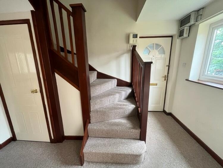 With cloaks cupboard, electric heater and window to rear and stairs off.
