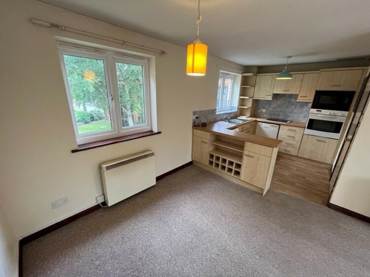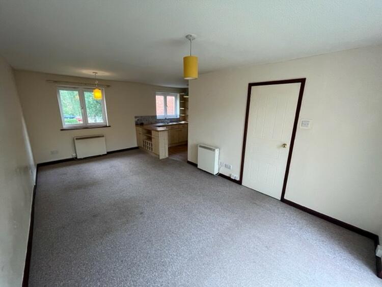 A bright and airy open plan living space. With a fitted kitchen comprising of base and wall units, sink, integrated oven, hob, extractor and microwave. Two electric heaters, two windows to front aspect and patio doors opening onto the Balcony.