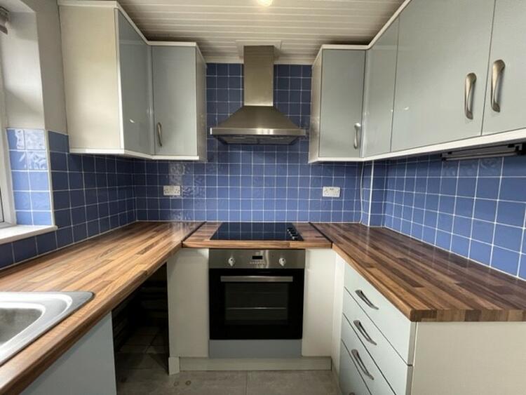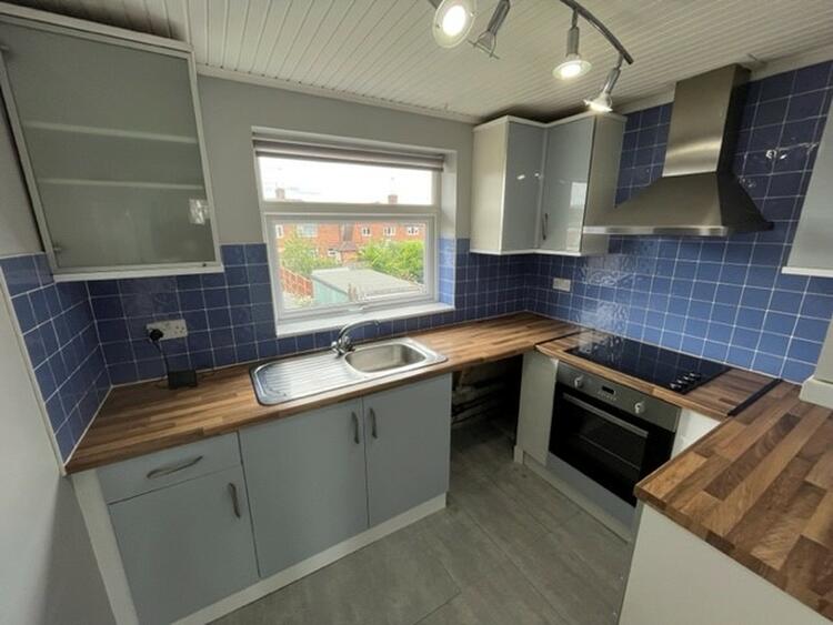 With a modern range of base and wall units, work surfaces with inset sink. Integrated oven, hob and extractor. Space for appliances and window to rear.