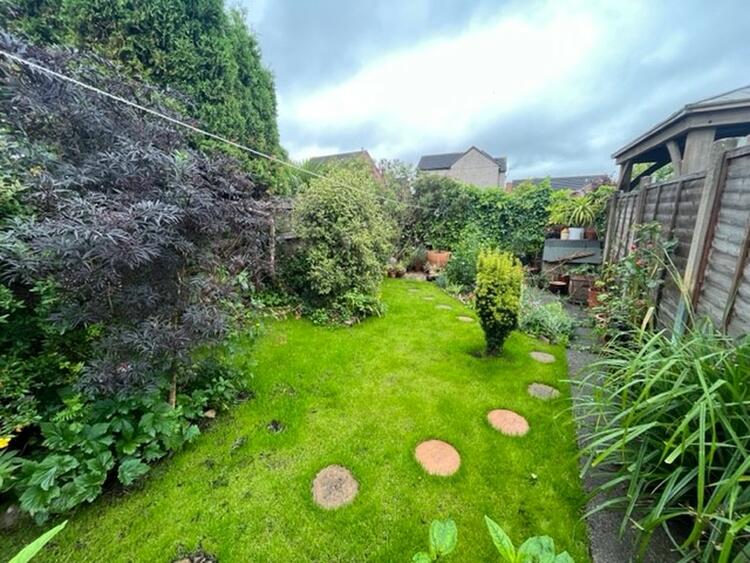 The property has a small front garden. Side alley leads to a good size rear garden with store, patio, lawns and shed.