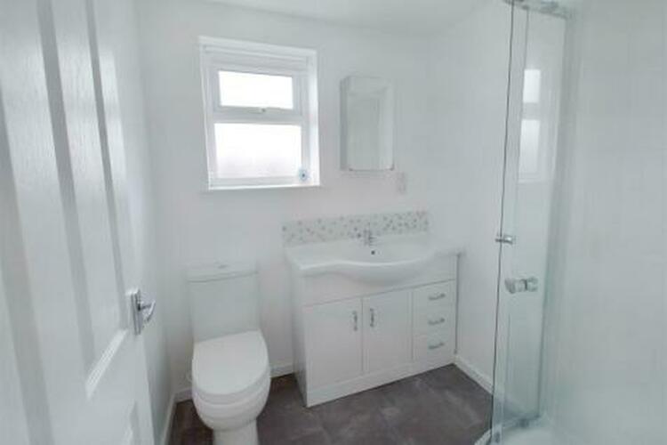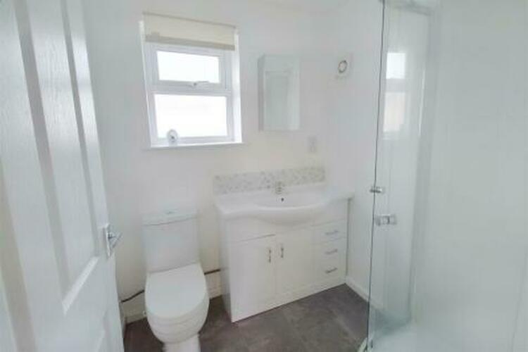Incorporating a three-piece suite comprising wash hand basin with vanity unit, low flush WC and shower cubicle with electric shower. Double glazed window.