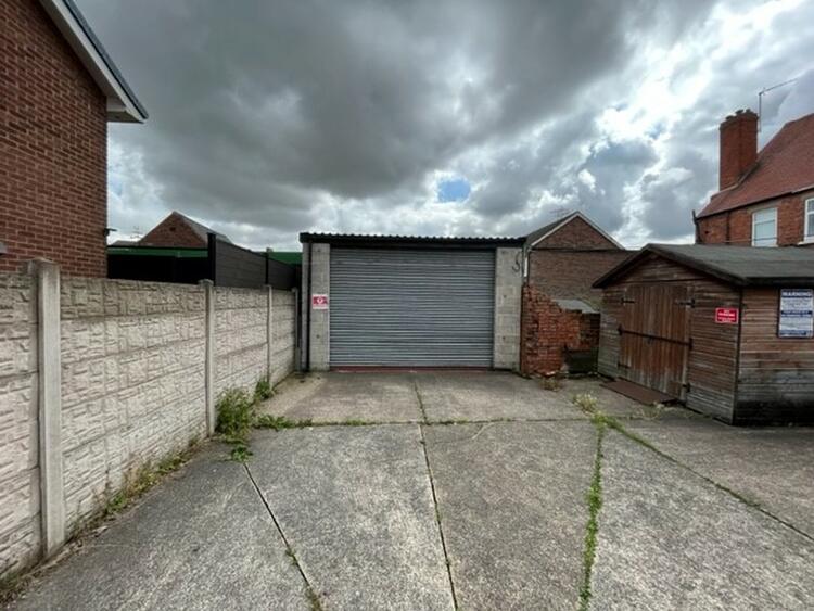 A brick and breeze block unit with secure roller door. Located to the rear.