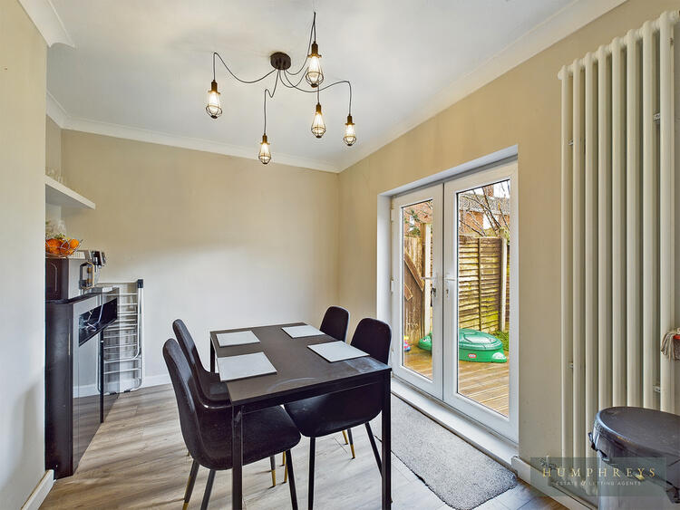 Entry into the home is through a UPVC double glazed door into the Hall which features laminate flooring and this floor covering extends through into all areas of the ground floor accommodation. There is a staircase which leads to the first floor and there is a handy under stair cupboard also. The main reception area is the Living Room which is of a good-size, and it is positioned to the front of the home. To the rear of the home is Kitchen and Dining Room which provide an open plan feel, with the Kitchen featuring and a range of fitted white gloss laminate units with square-edged wooden work surfaces with an inset stainless-steel sink and drainer, inset 4 ring electric hob and built under oven and grill. There is plumbing/space for a washing machine, fridge freezer and there is a wall mounted gas combination central heating boiler also. The Dining Room features UPVC double glazed French doors which provide access to the rear garden.