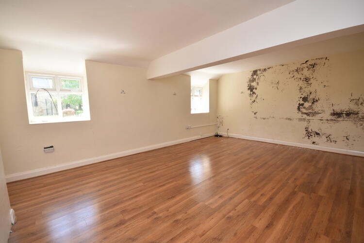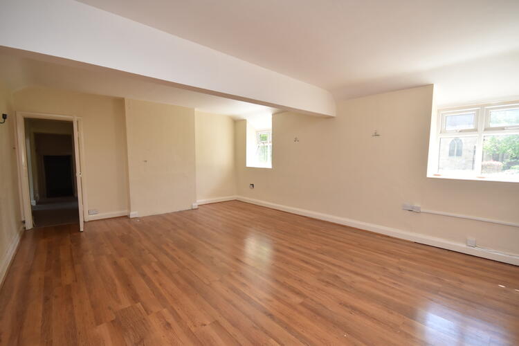 Two UPVC double glazed windows with views towards the church, and laminate wood strip flooring.