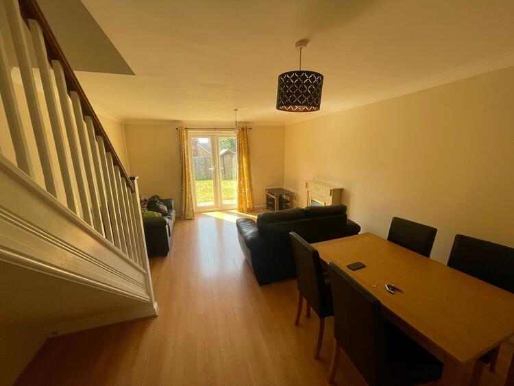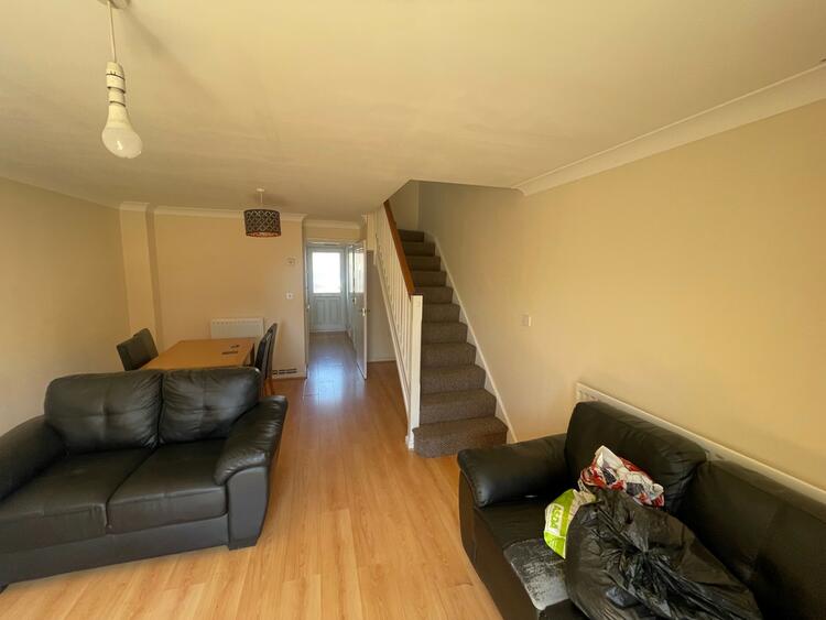 The property comprises entrance hallway, downstairs cloakroom, kitchen with appliances, living/dining room, two double bedrooms, one with en-suite bathroom and one with en-suite shower room. Rear Garden.