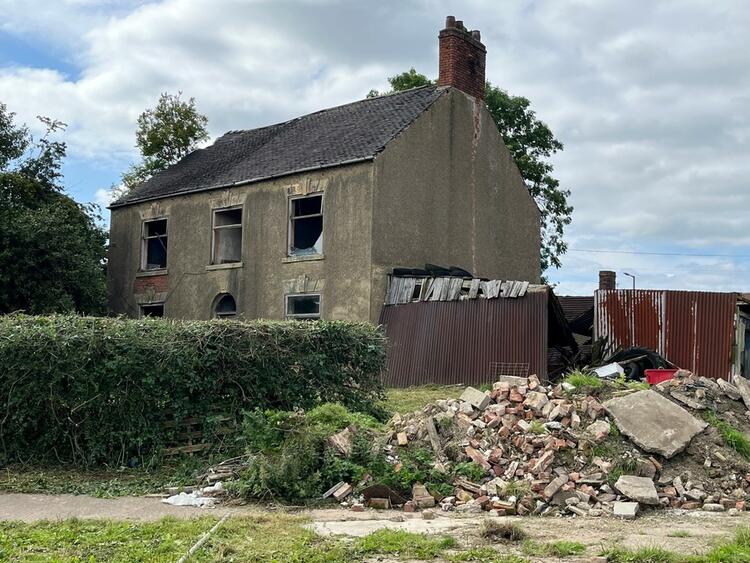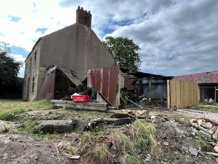 A derelict four bedroomed detached farmhouse set in 0.3 acre gardens and enjoying far reaching views.