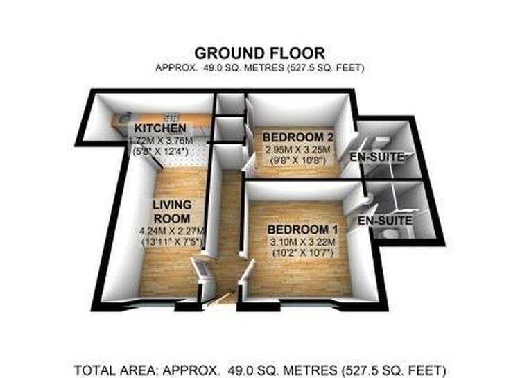 Apartment consists of entrance hall, living/kitchen area, bedroom one with en-suite bathroom and bedroom two with ensuite shower room.