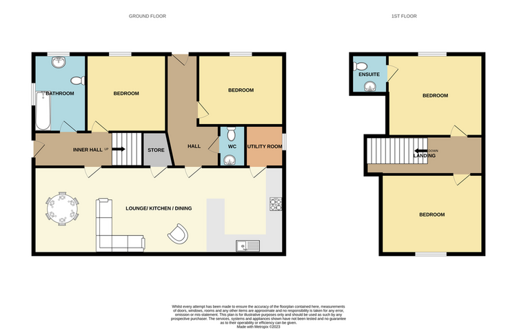 Reception Hallway. Cloakroom / W.C. Open Plan Living, kitchen and dining space 10.80m x 3.20m. Utility Room 1.4m x 1.4m. Inner Hallway. Bedroom One 3.50m x 3.30m. Bedroom Two 3.45m x 2.90m. Family Bathroom.