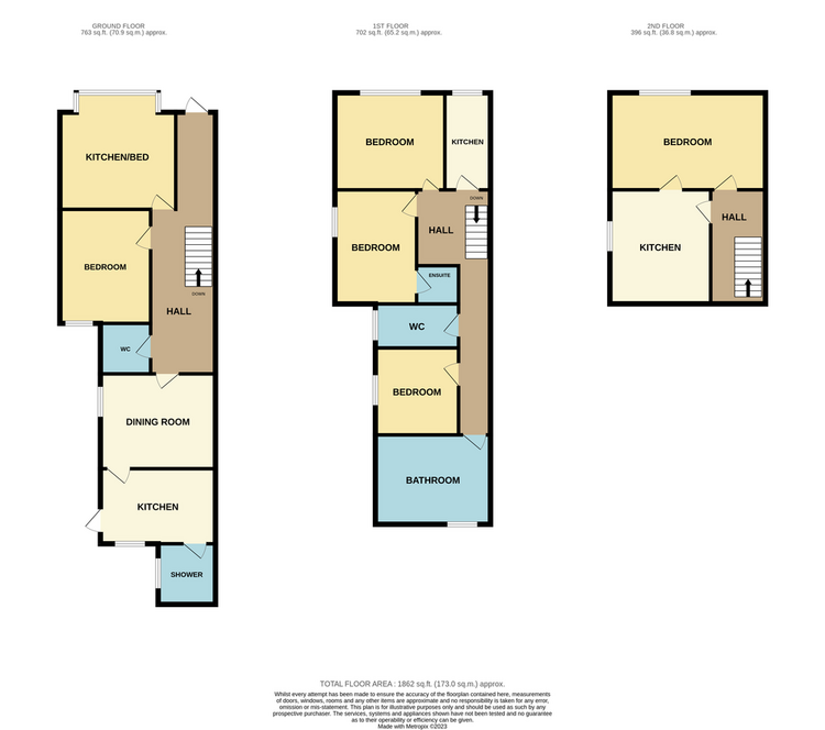 Comprising of inviting entrance hallway, three large rooms to ground floor with two kitchens, w/c and shower room. To first floor is 3 large rooms, 1 en-suite, kitchen, w/c and family bathroom. To the second floor is a large room and kitchen.