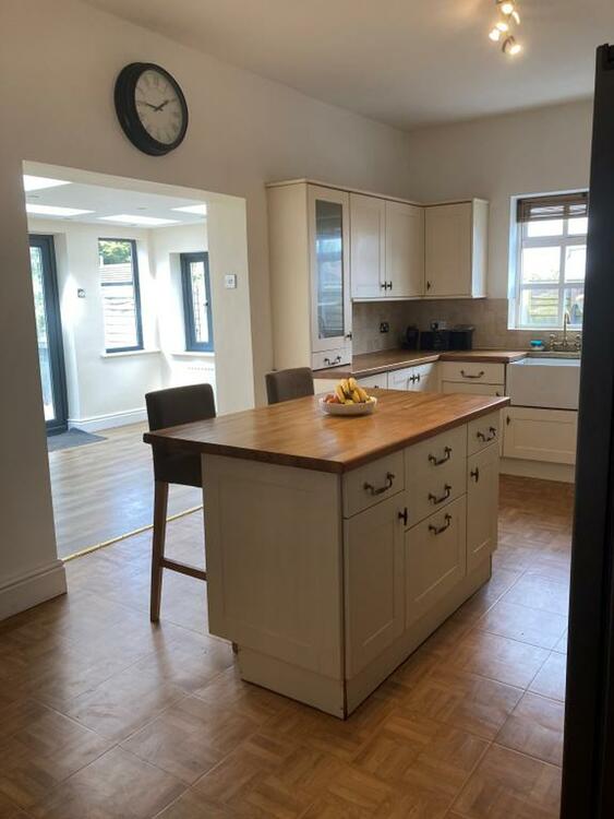 This double fronted property has good size hallway with spacious lounge, second living room, open plan kitchen with central island, leading to a dining area/family room with patio doors leading out to the garden. Large utility room with door to garden. This property also has two ground floor bedrooms with a large four piece bathroom with corner bath and separate shower.