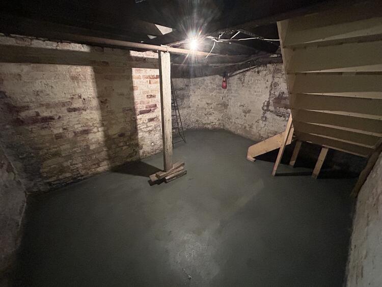 It was in its past a cooperative building that was subdivided and separated many years ago leaving a double fronted unit with and office space and basements.
