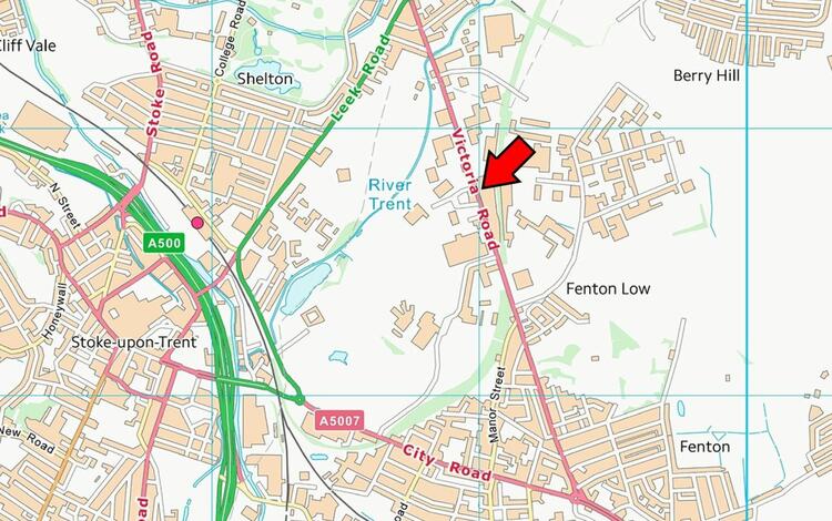 The property is prominently located adjacent the busy Victoria Road which connects Hanley City Centre through to Fenton and the A50 dual carriageway. The A50 links Nottingham and Leicester to the east and the M6 Motorway to the north at Junctions 15 and 16.