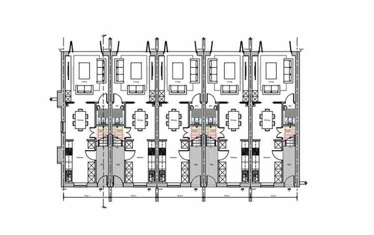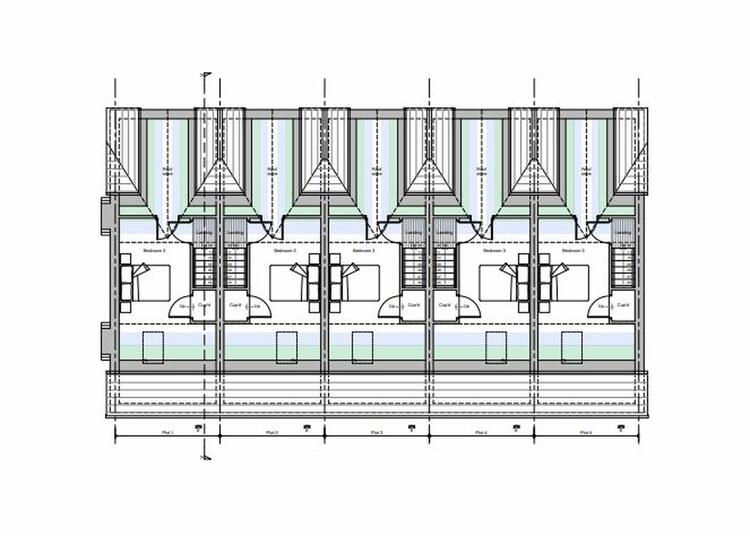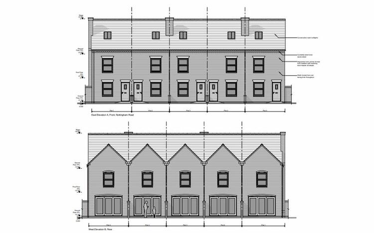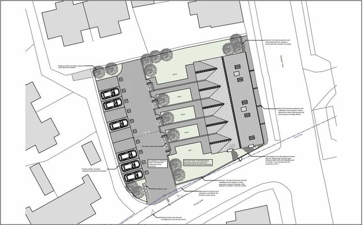 A development site with planning permission for 5x three bedroom town houses with parking.