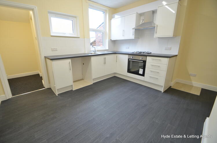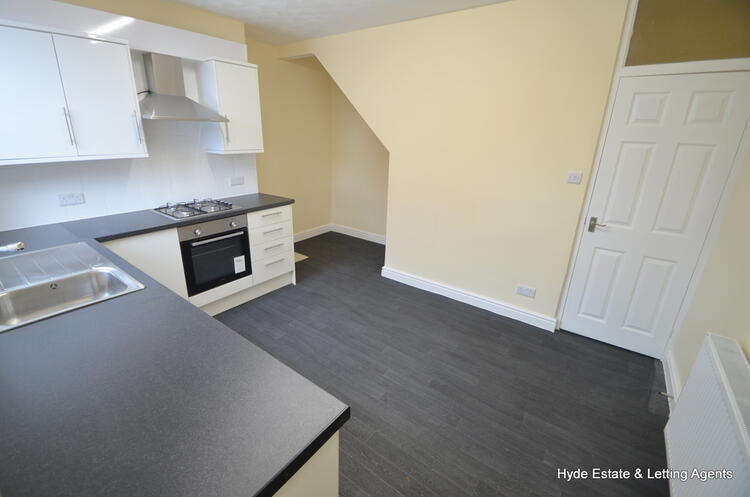 Briefly comprising of a vestibule entrance with composite front door, front facing lounge, dining kitchen which features a range of modern white gloss fronted wall and base units with contrasting countertop and tiled splashbacks. Integral oven with gas hob and extractor hood with space for a free-standing fridge/freezer together with plumbing for a washing machine. Ample space for a family sized dining suite. A back porch allows access to the enclosed rear yard.