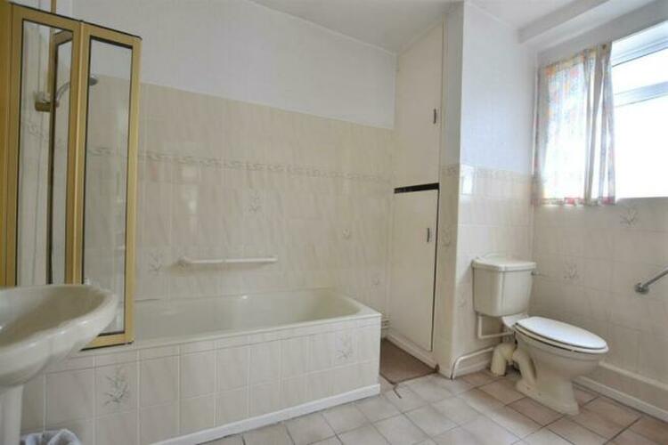 Comprising tiled panelled bath with mixer shower tap over and shower screening, low flush WC, pedestal wash hand basin, airing cupboard housing the combi gas boiler, radiator, tiled flooring, uPVC double glazed opaque glass window to the side elevation.