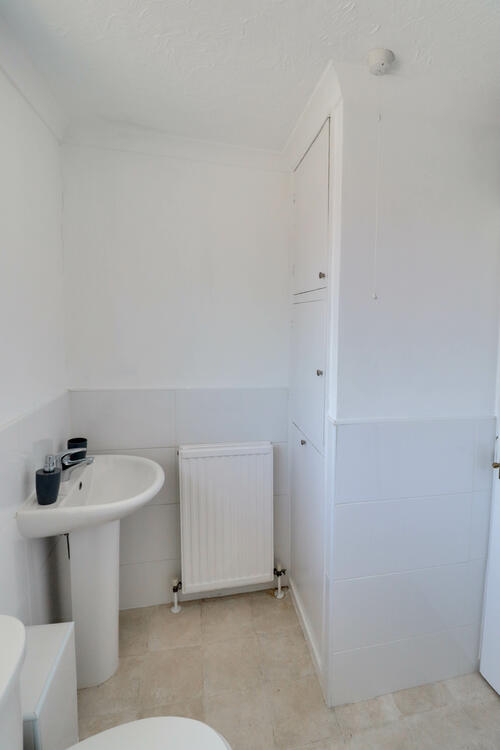 Having bath with shower over, toilet and wash hand basin, also the added benefit of airing cupboard where the combi boiler sits.